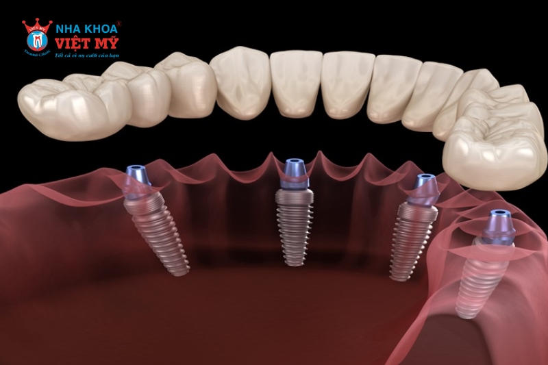- Đặt khớp nối Abutment, lấy dấu răng và chọn màu sắc răng sứ. - Chế tác mão răng sứ tại Labo. - Bác sĩ gắn răng sứ cố định bằng ốc vặn hoặc cement nha khoa. - Kiểm tra khớp cắn, thẩm mỹ và hẹn tái khám định kỳ.