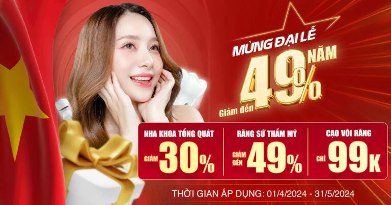 Để đón mừng không khí ngày Đại lễ, Nha khoa Việt Mỹ mang đến chương trình “Mừng Đại lễ 49 năm – Giảm đến 49%”, hỗ trợ Quý khách hàng chăm sóc răng miệng giá rẻ, đón chào nụ cười mới với khuôn răng hoàn thiện.