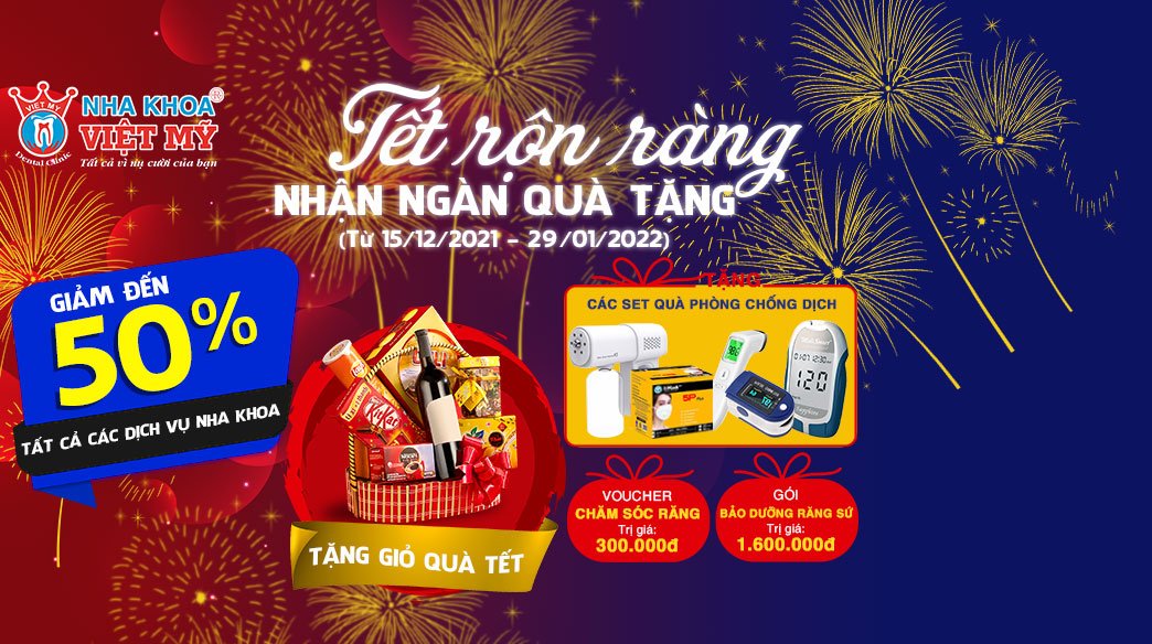 Xuân Nhâm Dần 2022 đang đến rất gần, hòa cùng niềm vui khi sắp sửa bước qua năm mới, Nha Khoa Việt Mỹ tung ra chương trình ưu đãi mới mẻ và độc đáo nhất từ trước đến nay: giảm tất cả các dịch vụ nha khoa lên đến 50% và khách hàng đến làm dịch vụ là có quà!!!